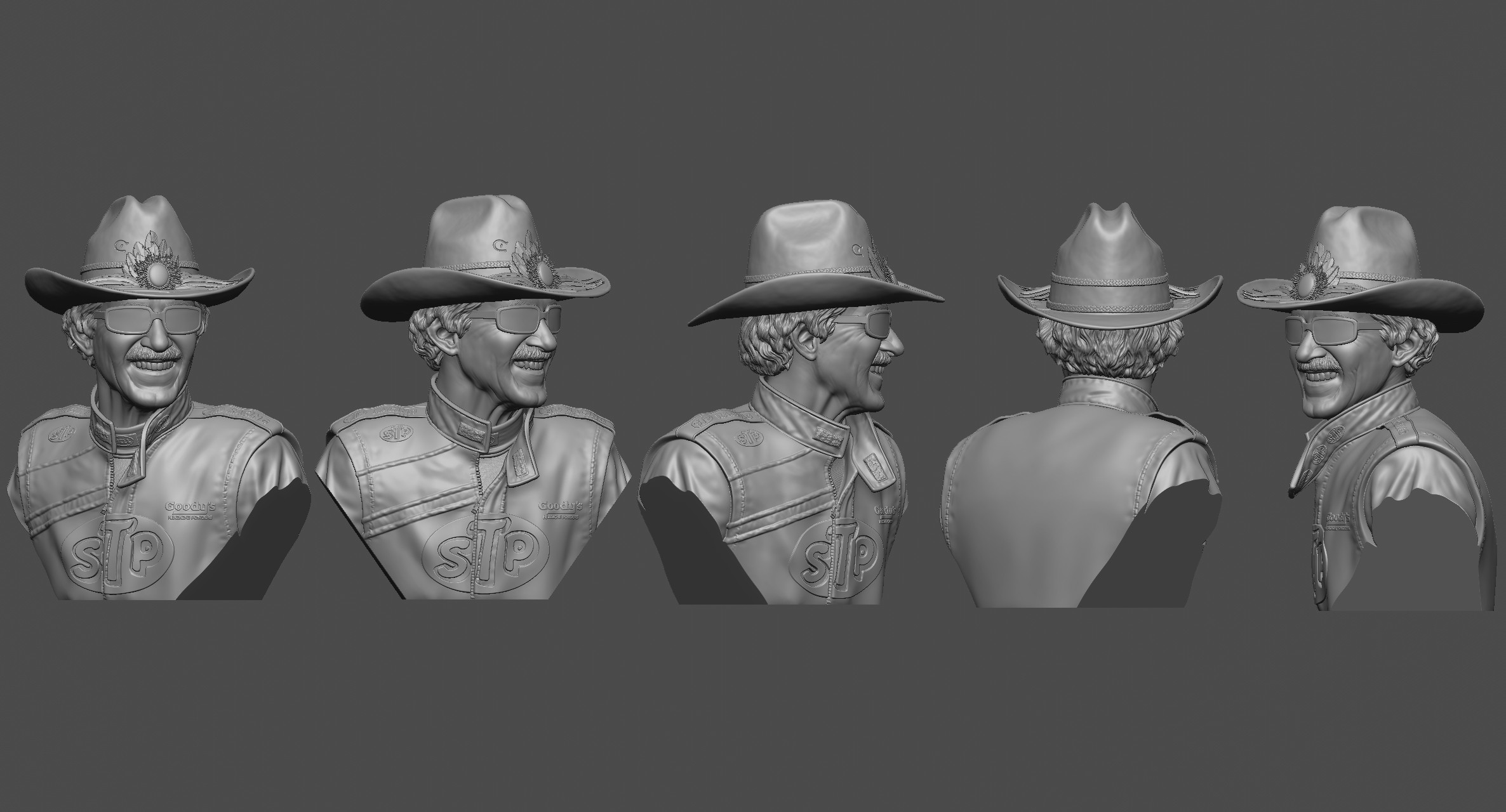 In a notable collaboration with Nascar and the iconic Richard Petty, we embarked on a project with the sole purpose of commemorating this legendary figure. In the course of this series, I played a pivotal role in the creation of several distinctive art pieces. Two standout pieces from this collection include the “Petty Blue Bust,” named in tribute to his iconic Petty Blue car paint color, and the “Asphalt Bust,” representing the very essence of the racetrack itself. These remarkable busts of Mr. Petty authentically capture his iconic appearance and serve as a heartfelt homage to his lasting and influential legacy.